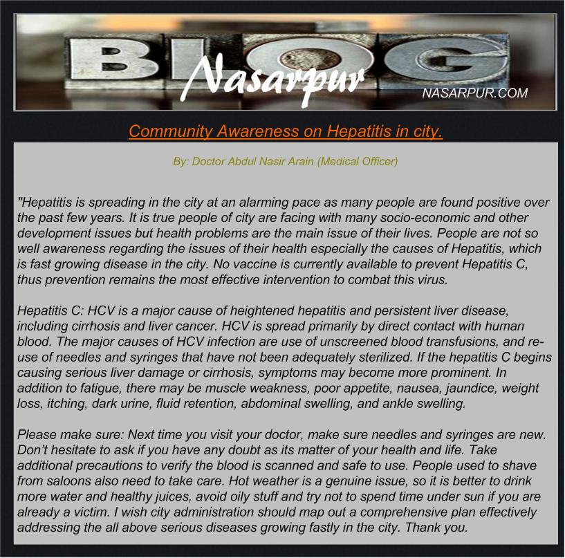 By: Doctor Abdul Nasir Arain (Medical Officer)